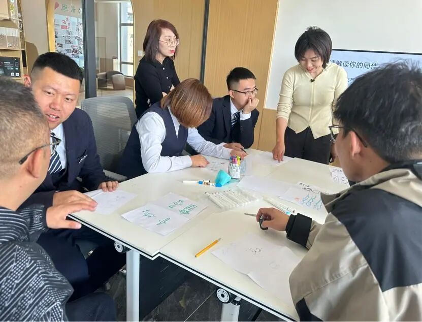 活动伊始,轻松有趣的破冰小游戏迅速打破陌生感,让现场氛围升温。随后,在个人绘画性格分析环节,参与者通过线条、色彩创作“个性名片”,在专业老师的引导下解读自我认知与情绪表达;在分组绘画心理解析阶段,将作品逆时针传递,遵循“只谈感受不评好坏”的原则分享见解,在共情与交流中释放心理压力;在团体创作疗愈环节,大家剪下代表自身的动物画作,共同拼贴成主题作品并构思命名,在协作中强化了团队凝聚力。
