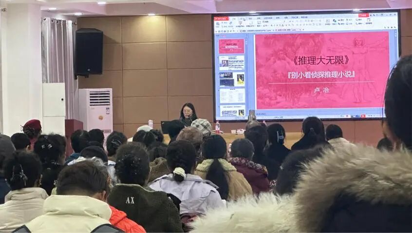 承办,150余名推理文学爱好者齐聚报告厅,静待讲座开场。作为被誉为“推理入门圣经”的《推理大无限》作者,卢冶以“解谜世界的空间密码”为主题,从推理小说的空间设置切入,剖析英、美、日、中各国流派差异,深挖背后的文化基因,用逻辑学与文学赏析结合的风格,引导听众跳出浅层阅读,触摸作品思想核心。
